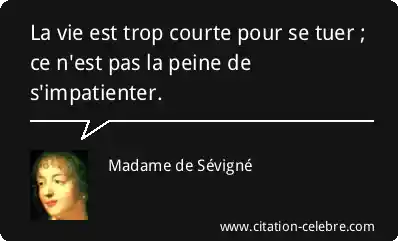 La vie est trop courte pour se tuer ; ce n'est pas la peine de s'impatienter.