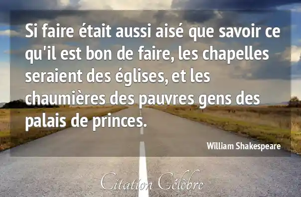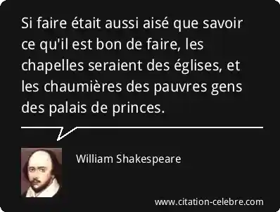 Si faire était aussi aisé que savoir ce qu'il est bon de faire, les chapelles seraient des églises, et les chaumières des pauvres gens des palais de princes.