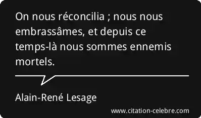 On nous réconcilia ; nous nous embrassâmes, et depuis ce temps-là nous sommes ennemis mortels.