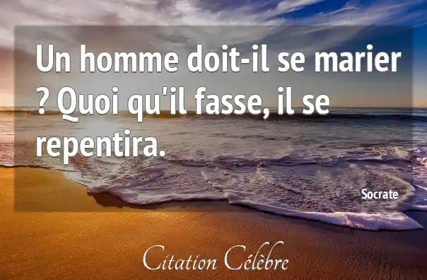 Un homme doit-il se marier ? Quoi qu'il fasse, il se repentira.
