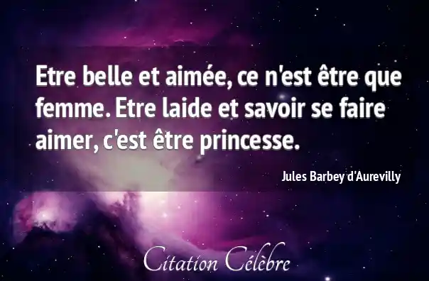 Etre belle et aimée, ce n'est être que femme. Etre laide et savoir se faire aimer, c'est être princesse.