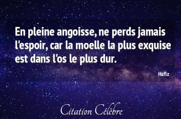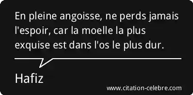 En pleine angoisse, ne perds jamais l'espoir, car la moelle la plus exquise est dans l'os le plus dur.