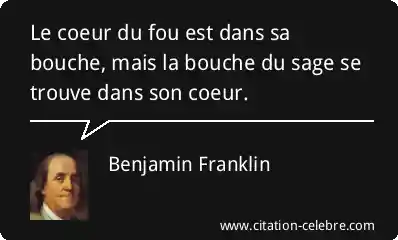 Citation Benjamin Franklin coeur : Le coeur du fou est dans sa bouche, mais la...