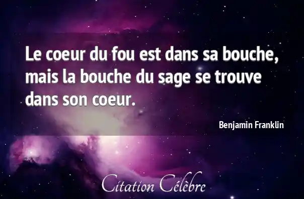 Citation de Benjamin Franklin sur Coeur, Sage et Bouche