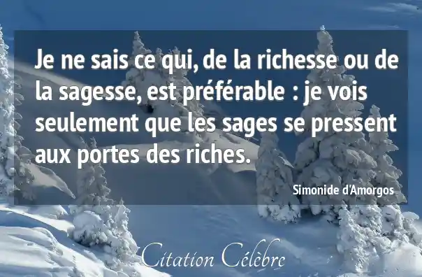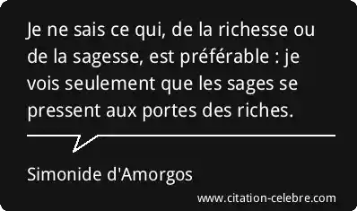Je ne sais ce qui, de la richesse ou de la sagesse, est préférable : je vois seulement que les sages se pressent aux portes des riches.