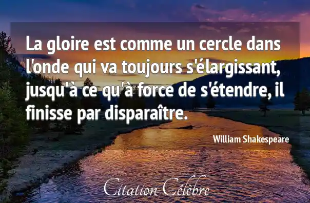La gloire est comme un cercle dans l'onde qui va toujours s'élargissant, jusqu'à ce qu'à force de s'étendre, il finisse par disparaître.