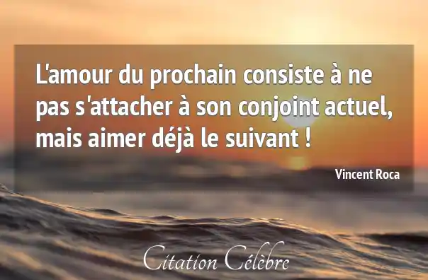 L'amour du prochain consiste à ne pas s'attacher à son conjoint actuel, mais aimer déjà le suivant !