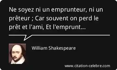Ne soyez ni un emprunteur, ni un prêteur ; Car souvent on perd le prêt et l'ami, Et l'emprunt...