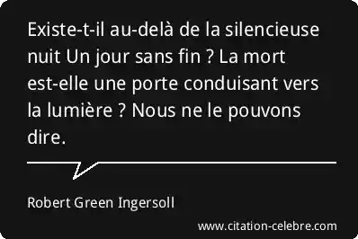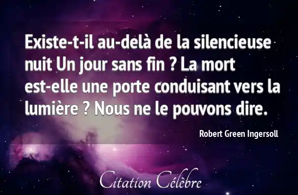 Existe-t-il au-delà de la silencieuse nuit Un jour sans fin ? La mort est-elle une porte conduisant vers la lumière ? Nous ne le pouvons dire.