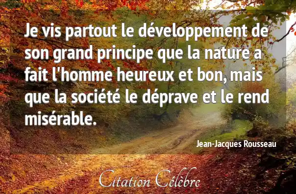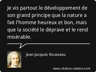 Je vis partout le développement de son grand principe que la nature a fait l'homme heureux et bon, mais que la société le déprave et le rend misérable.