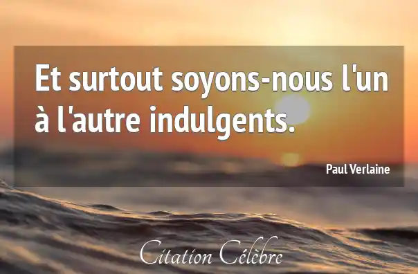 Et surtout soyons-nous l'un à l'autre indulgents.