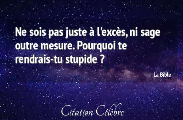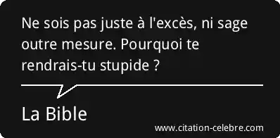 Ne sois pas juste à l'excès, ni sage outre mesure. Pourquoi te rendrais-tu stupide ?