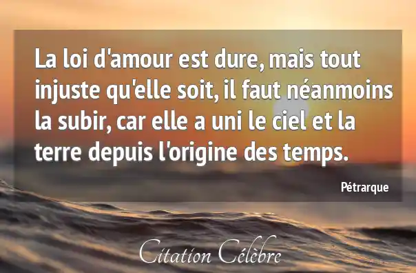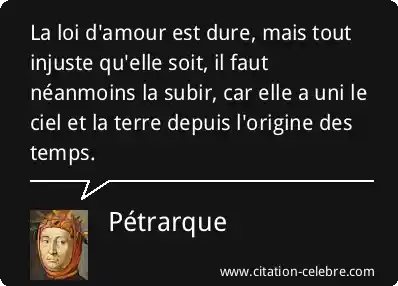 La loi d'amour est dure, mais tout injuste qu'elle soit, il faut néanmoins la subir, car elle a uni le ciel et la terre depuis l'origine des temps.