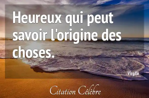 Heureux qui peut savoir l'origine des choses.