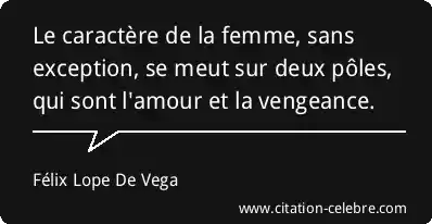Le caractère de la femme, sans exception, se meut sur deux pôles, qui sont l'amour et la vengeance.