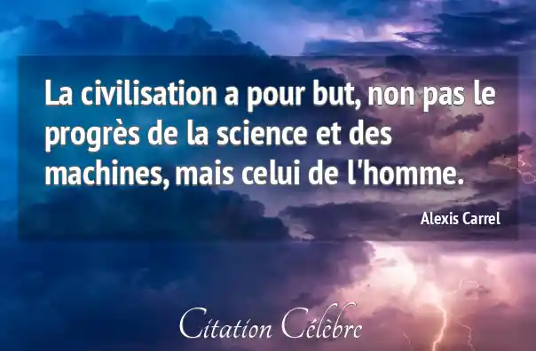 La civilisation a pour but, non pas le progrès de la science et des machines, mais celui de l'homme.