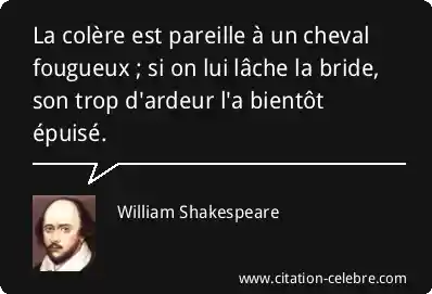 La colère est pareille à un cheval fougueux ; si on lui lâche la bride, son trop d'ardeur l'a bientôt épuisé.
