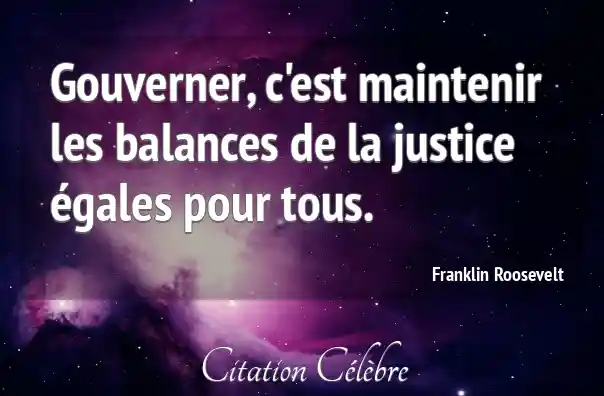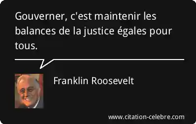 Citation Franklin Roosevelt justice : Gouverner, c'est maintenir les balances de la justice égales pour...