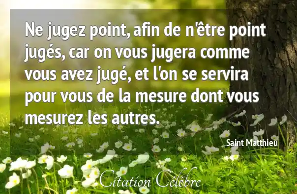 Ne jugez point, afin de n'être point jugés, car on vous jugera comme vous avez jugé, et l'on se servira pour vous de la mesure dont vous mesurez les autres.