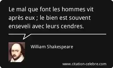Le mal que font les hommes vit après eux ; le bien est souvent enseveli avec leurs cendres.