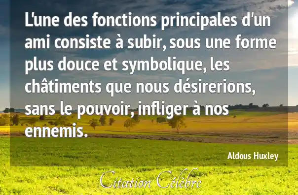 L'une des fonctions principales d'un ami consiste à subir, sous une forme plus douce et symbolique, les châtiments que nous désirerions, sans le pouvoir, infliger à nos ennemis.