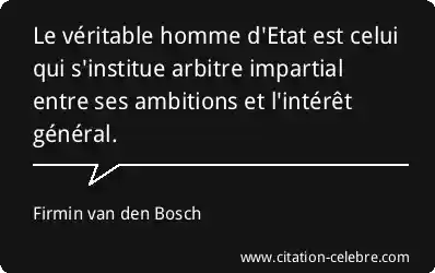 Le véritable homme d'Etat est celui qui s'institue arbitre impartial entre ses ambitions et l'intérêt général.