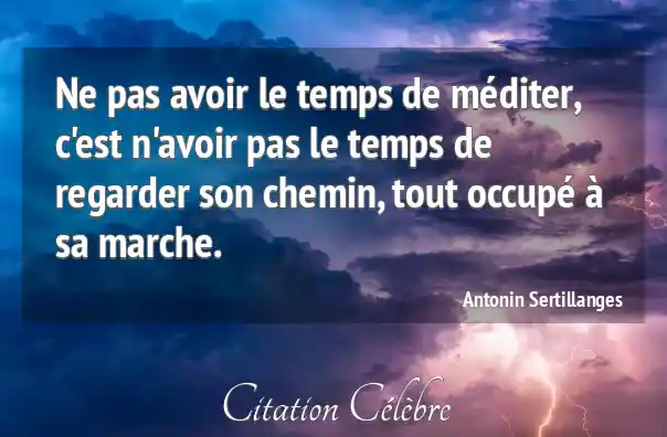 Ne pas avoir le temps de méditer, c'est n'avoir pas le temps de regarder son chemin, tout occupé à sa marche.