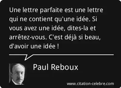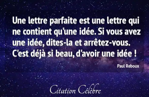 Une lettre parfaite est une lettre qui ne contient qu'une idée. Si vous avez une idée, dites-la et arrêtez-vous. C'est déjà si beau, d'avoir une idée !