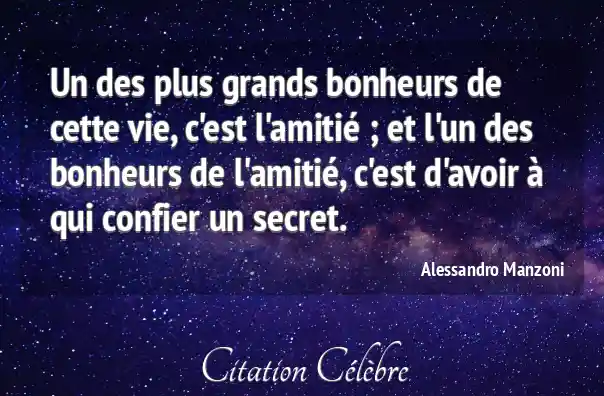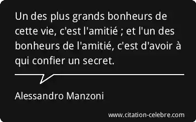 Un des plus grands bonheurs de cette vie, c'est l'amitié ; et l'un des bonheurs de l'amitié, c'est d'avoir à qui confier un secret.