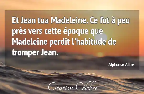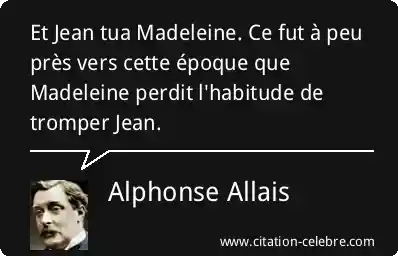 Et Jean tua Madeleine. Ce fut à peu près vers cette époque que Madeleine perdit l'habitude de tromper Jean.