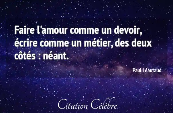 Faire l'amour comme un devoir, écrire comme un métier, des deux côtés : néant.
