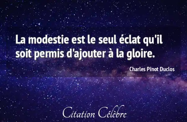 La modestie est le seul éclat qu'il soit permis d'ajouter à la gloire.