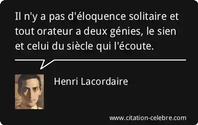 Il n'y a pas d'éloquence solitaire et tout orateur a deux génies, le sien et celui du siècle qui l'écoute.
