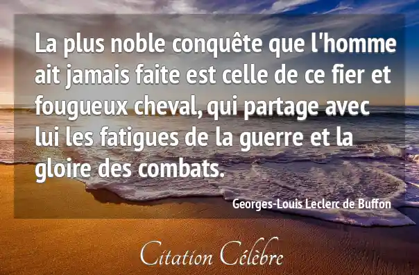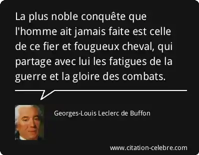 La plus noble conquête que l'homme ait jamais faite est celle de ce fier et fougueux cheval, qui partage avec lui les fatigues de la guerre et la gloire des combats.