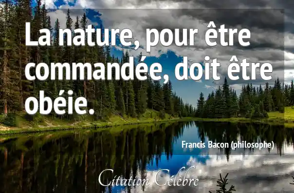 La nature, pour être commandée, doit être obéie.