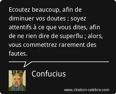 Ecoutez beaucoup, afin de diminuer vos doutes ; soyez attentifs à ce que vous dites, afin de ne rien dire de superflu ; alors, vous commettrez rarement des fautes.