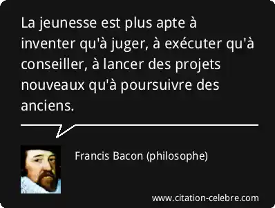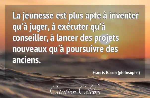 La jeunesse est plus apte à inventer qu'à juger, à exécuter qu'à conseiller, à lancer des projets nouveaux qu'à poursuivre des anciens.