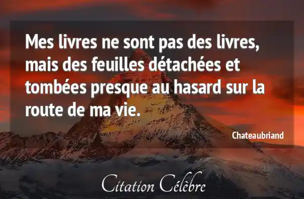 Mes livres ne sont pas des livres, mais des feuilles détachées et tombées presque au hasard sur la route de ma vie.