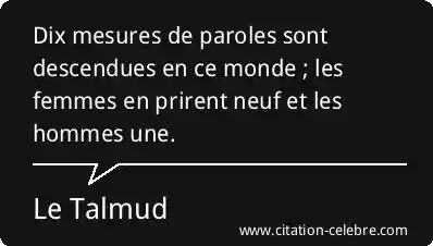 Dix mesures de paroles sont descendues en ce monde ; les femmes en prirent neuf et les hommes une.