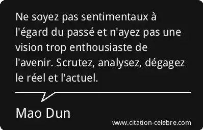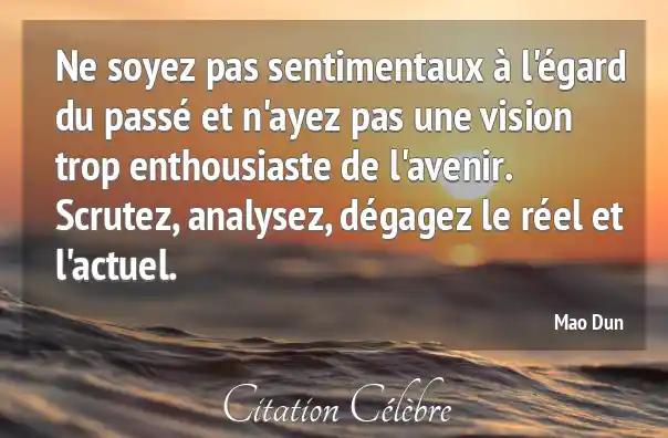 Ne soyez pas sentimentaux à l'égard du passé et n'ayez pas une vision trop enthousiaste de l'avenir. Scrutez, analysez, dégagez le réel et l'actuel.