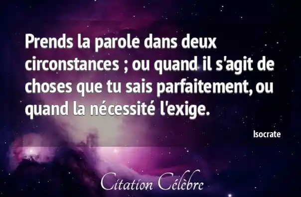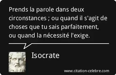 Prends la parole dans deux circonstances ; ou quand il s'agit de choses que tu sais parfaitement, ou quand la nécessité l'exige.