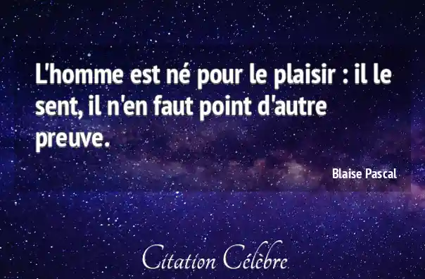 L'homme est né pour le plaisir : il le sent, il n'en faut point d'autre preuve.