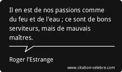 Il en est de nos passions comme du feu et de l'eau ; ce sont de bons serviteurs, mais de mauvais maîtres.