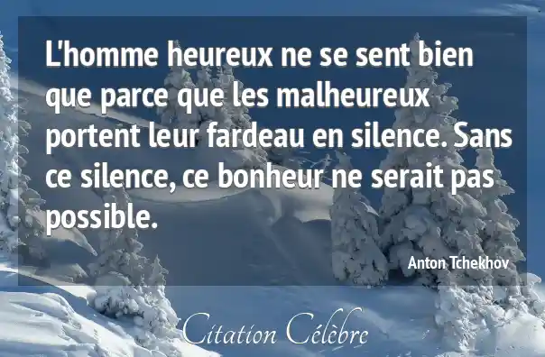L'homme heureux ne se sent bien que parce que les malheureux portent leur fardeau en silence. Sans ce silence, ce bonheur ne serait pas possible.