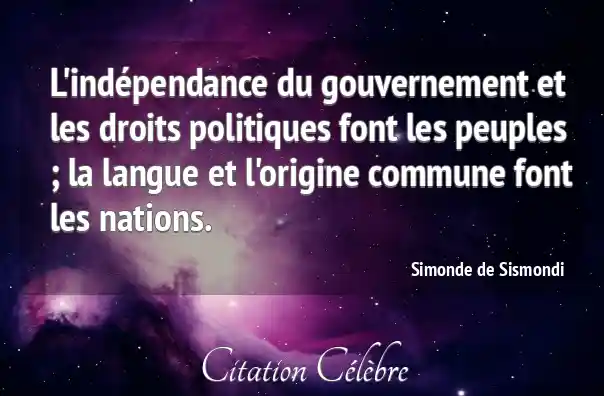 L'indépendance du gouvernement et les droits politiques font les peuples ; la langue et l'origine commune font les nations.