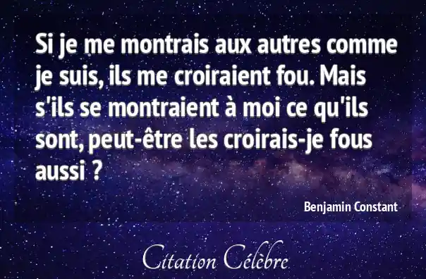 Si je me montrais aux autres comme je suis, ils me croiraient fou. Mais s'ils se montraient à moi ce qu'ils sont, peut-être les croirais-je fous aussi ?