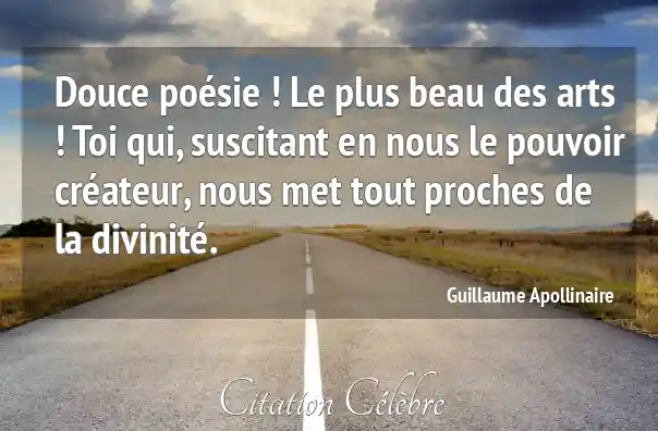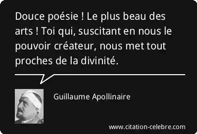 Douce poésie ! Le plus beau des arts ! Toi qui, suscitant en nous le pouvoir créateur, nous met tout proches de la divinité.