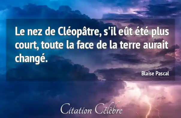 Le nez de Cléopâtre, s'il eût été plus court, toute la face de la terre aurait changé.