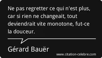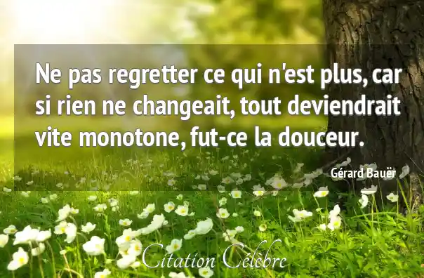 Ne pas regretter ce qui n'est plus, car si rien ne changeait, tout deviendrait vite monotone, fut-ce la douceur.
