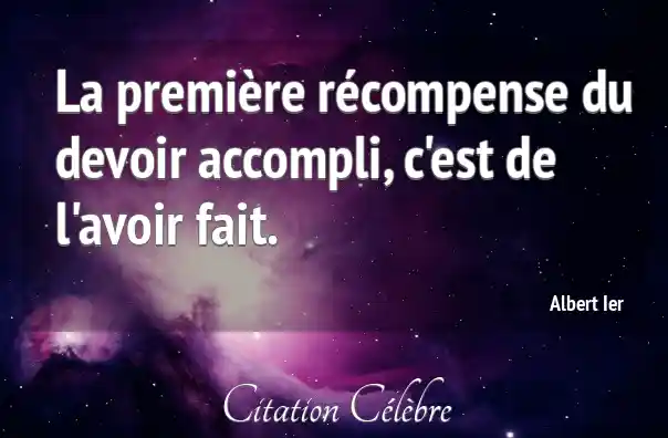 La première récompense du devoir accompli, c'est de l'avoir fait.